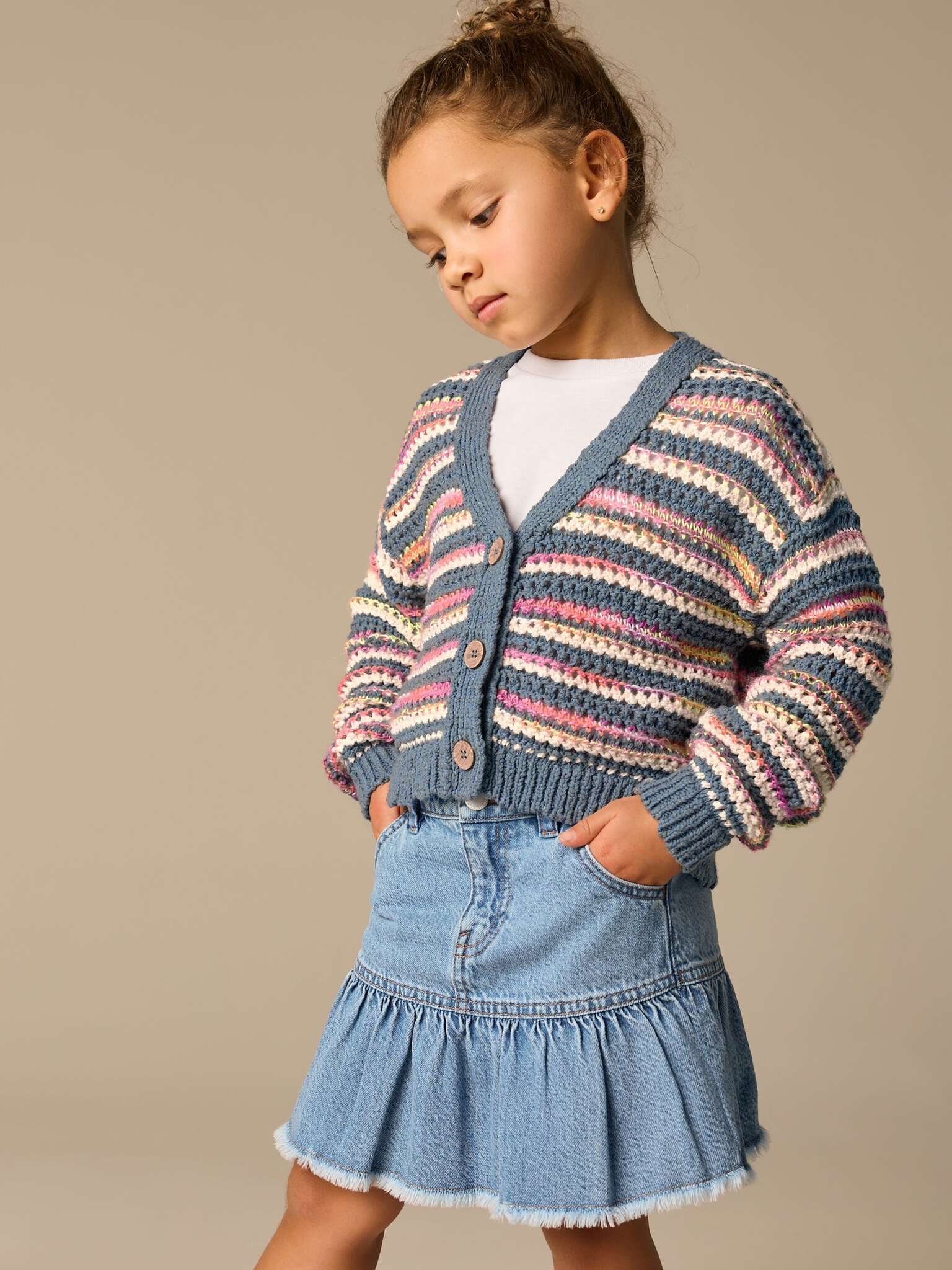 Кардиган вязаный для девочки Next E25-056, Синий, Молочный