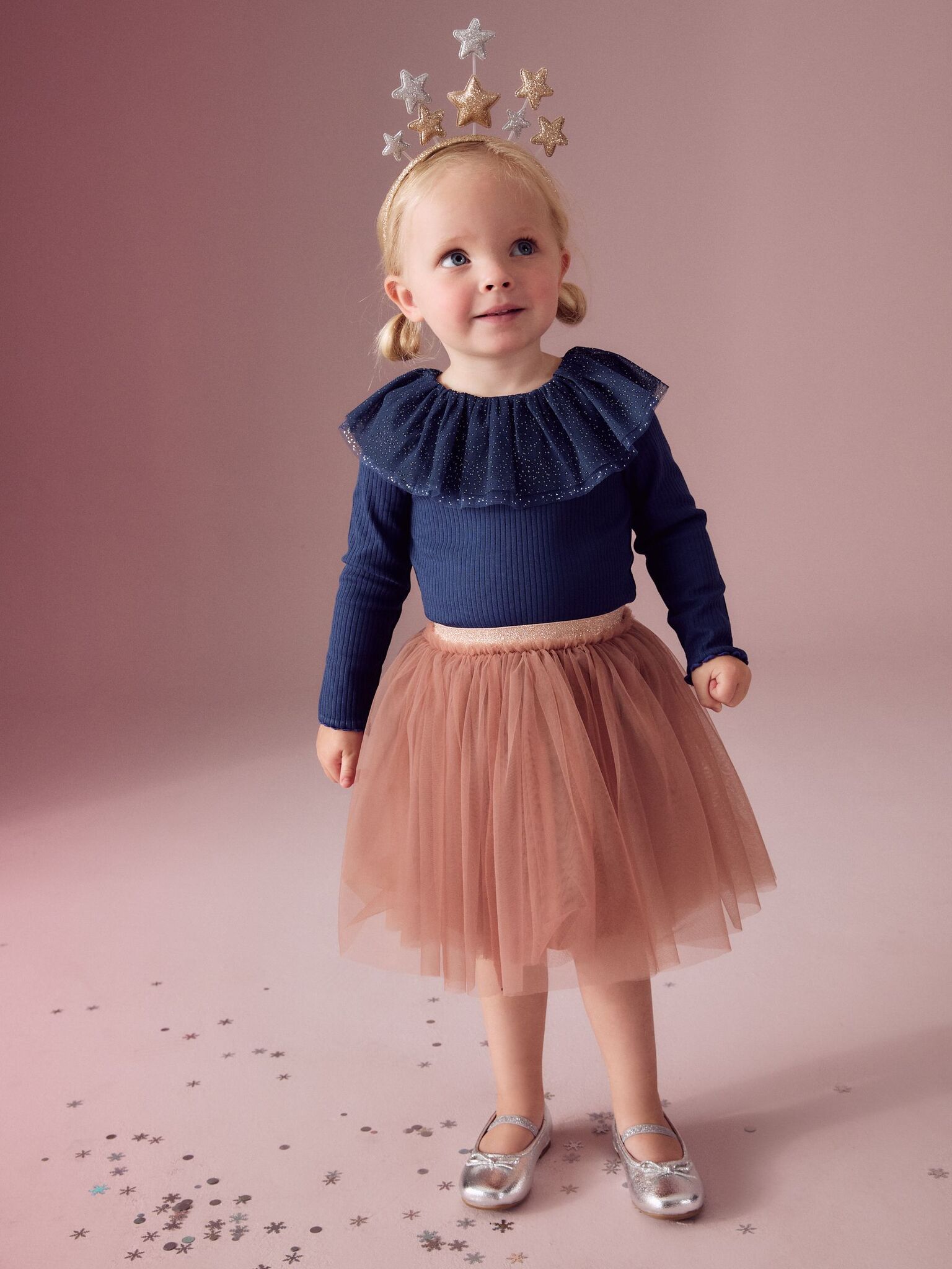 Лонгслив с воротником для девочки Next B44-993, Темно-синий