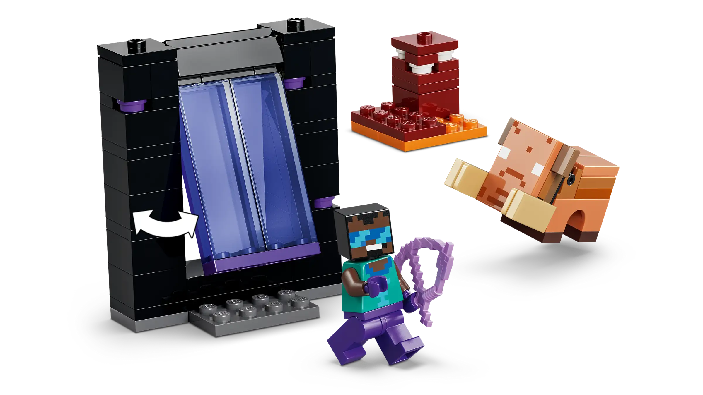 Transport Minecraft® players to a hands-on gaming adventure with the Nether & End Portal Journey (21584) gaming toy for boys and girls 7 years old and up. Pass through the portals to explore a build from each biome and embark on adventures with a Cool Hero minifigure, plus Enderman and a baby hoglin figures This LEGO® Minecraft playset features an End portal and a Nether portal with functions to access small builds for each biome. Authentic accessories, including an enchanted bow and healing potion, inspire endless creative adventures with familiar scenes and Minecraft characters. This set makes a great gamer gift for Minecraft players, LEGO builders and fans of gaming decor. And, with the LEGO Builder app, kids can build with confidence– zoom, rotate in 3D and track progress with easy-to-follow digital instructions. Set contains 192 pieces.